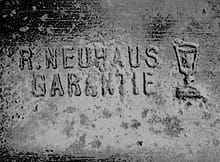 | Robert Neuhaus | Robert Neuhaus | 1888 (1895) | Remscheid | Německo | 2004 | ![]() | kalich, text: R. Neuhaus Garantie | ocelářské výrobky, nářadí a nožířské zboží | ||||