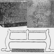 | Jackob Busch | Peter Jackob Wilhelm Busch | 1823 | Remscheid | NĚmecko | 2009 (součástí Wilh. Schmitt & Comp. - dříve Kirschen) | ![]() | Pila, text: Einster Gusstahl, Garantie, Spannsage | dláta, pily, truhlářské nářadí | ||||