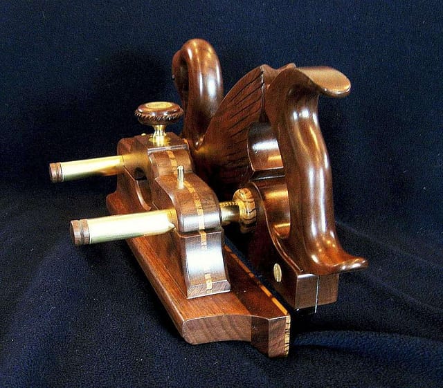 Černá labuť. Autorem této dražkovací pily (Rebbate saw-plane) je Issac Smith.