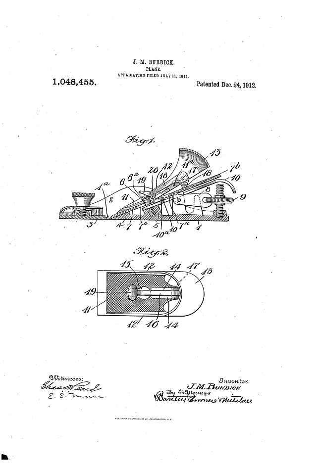 Na rozdíl od dalších patentů na různé typy mechanik lever-capu, převážně u block plane, u kterých byl Burdick autorem, nebo spoluautorem, byl tento jediný, který se nedostal do sériové výroby a patentové práva vyexpirovaly v roce 1948.