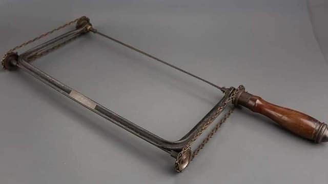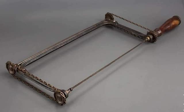Zvláštní ruční pila s mechanickým naklápěním pilového listu pomocí páru řetězových převodu na ose s ozuby. Autorem vynálezu je Charles A. Fenner, z Mystic River, Connecticut, USA (patent č. 297,366)Pila má 12 1/2 palcový (32cm) pilový list a celkova délka činí 22 1/2 palce (57cm).