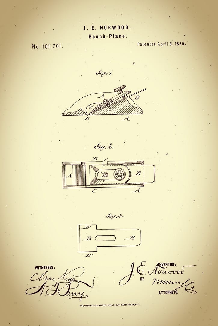 John Edward Norwood se narodil 4. prosince 1838 v Yorku, v Maine. V roce 1855 se přestěhoval do Massachusetts a pracoval tam jako tesař. V letech 1872-75 působil v oboru nábytkářské výrobě. Během tohoto období vyvíjel svůj malý jednoruční drážkovací hoblík (typ rabbet block plane), na který mu 6. dubna 1875 byl udělen patent. Zobrazený malý hoblík je dobře známý, ale jeho „královská“ verze s odnímatelnou rukojetí je vzácný. V registru patentových zaznamu je uvedeno, že nastroj nebyl nikdy seriově vyráběn, nicméně pár kousku existuje. Ceny jsou pochopitelně velmi vysoké. Norwoodův hoblík byl zobrazen v tematickém kalendáři s raritnim nářadím pro rok 2010 od Rogera K Smitha.