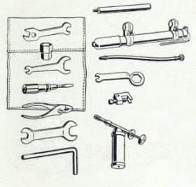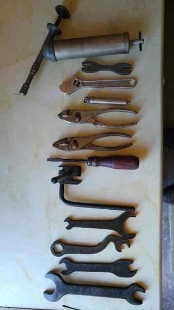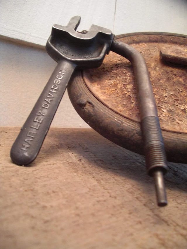 Zajímavé nářadí vyráběla rovněž i firma Harley Davidson. Zvláštní je zejména speciální klíč/přípravek na řetězy (chain tool) na posledním obrázku.