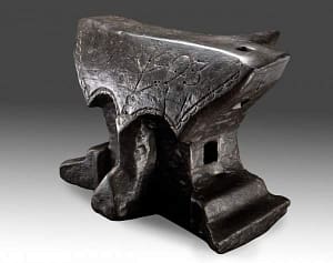 „STŘEDOEVROPSKÁ“ KOVADLINA Tato majestátní, 44 x 30 x 31cm velká kovadlina, s dobře čitelným dekorativním vzorem, patří do francouzské, švýcarské či rakouské typologie. Tyto kovadliny byly typické svým robustním tělem se zdobeným čelem a dvojitým obloukem pod ním. Centrální sloup u nich zpravidla přecházel ve stupňovitou základnu. Obdélníková pracovní deska, obvykle končící na jedné nebo […]